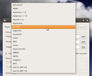MusicTracker is a “now playing” plug-in for Pidgin. It supports a palatable herd of music players, from Banshee to LastFm and provides a wide range of customization options (such as format, when to show, etc.)